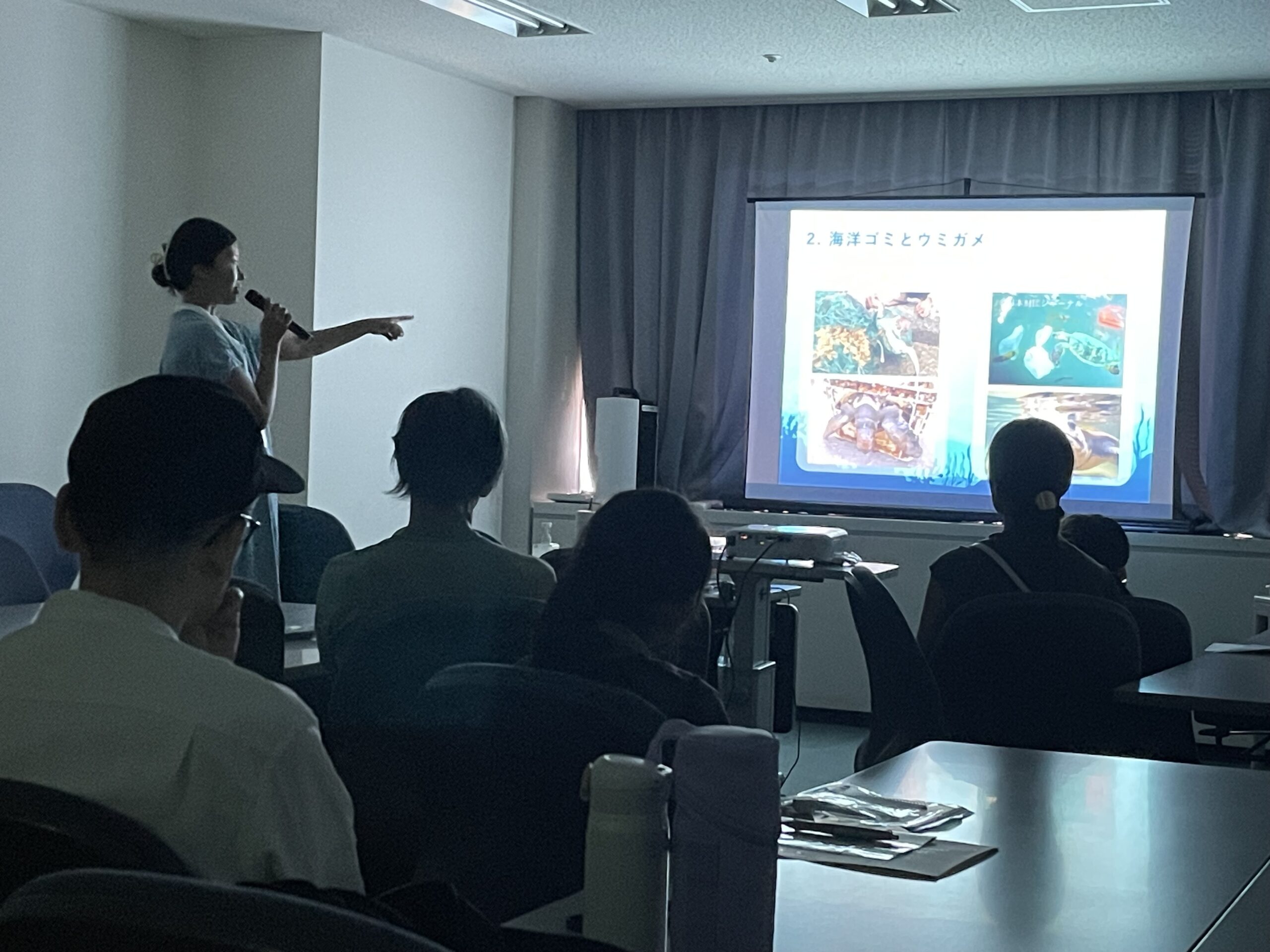 まずはスライドを使って、「海洋ゴミ」と「ウミガメ」に関する簡単なレクチャーを行いました。