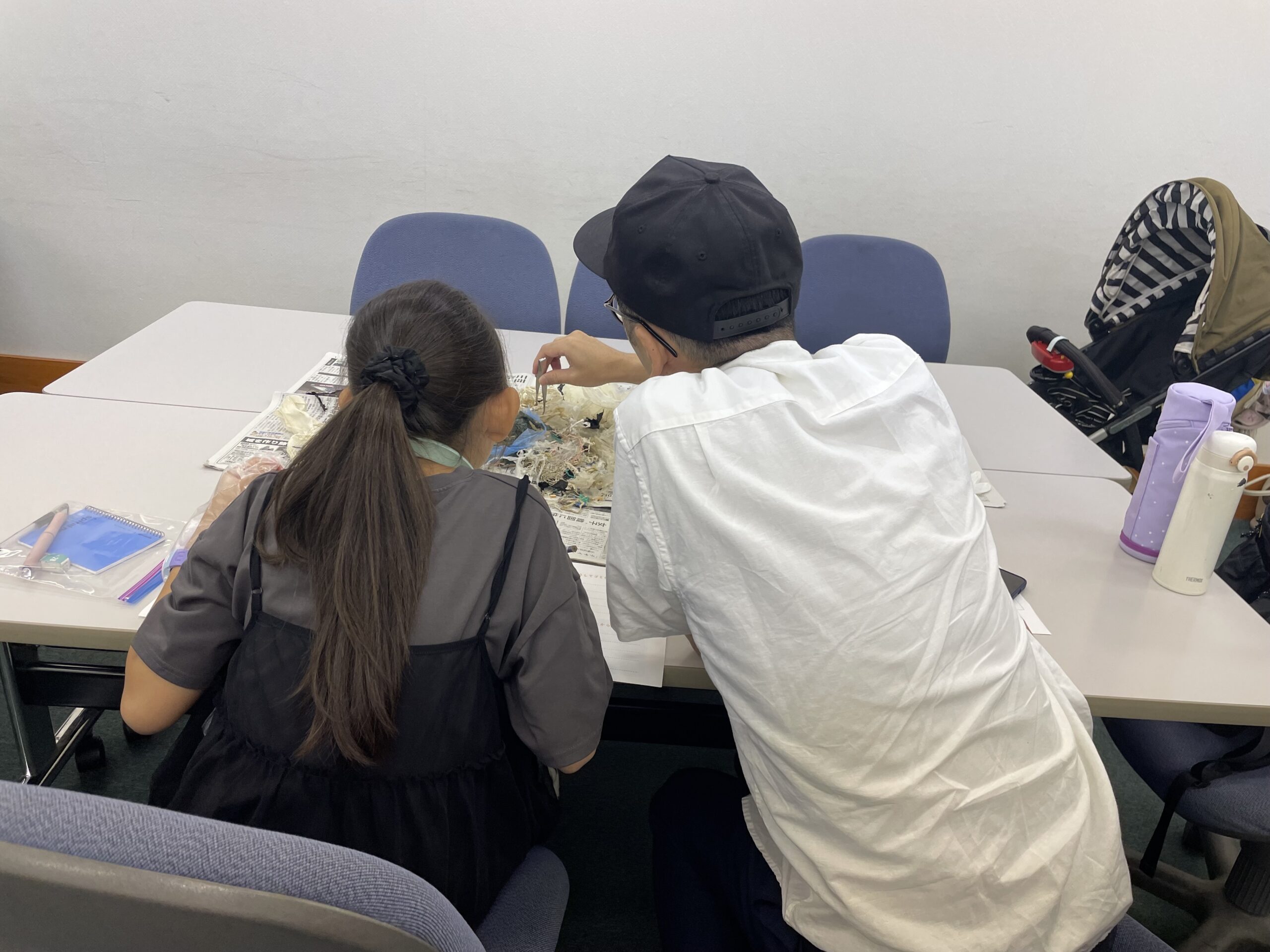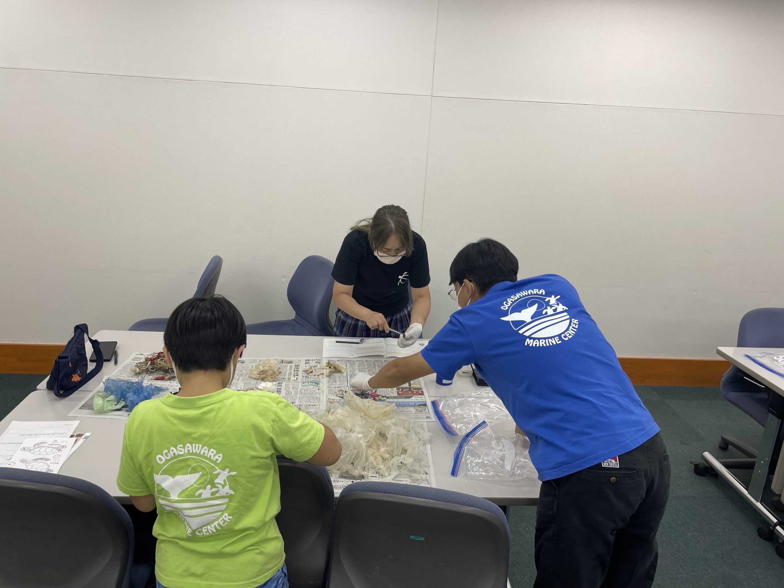次はグループ作業に移り、 実際に「ウミガメが食べてしまったゴミ」に触れていただきました。