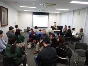 その後のグループワークでは、自己紹介を交えながら「今、自分ができること」をテーマに話し合いました。 今回は、長年ご支援くださっている方から初めて参加してくださった方まで、本当に様々な顔ぶれが集まりました。皆様それぞれの視点で意見を出し合っていただき、時間が足りないと感じるほど、じっくりと語り合える機会となりました。参加された皆様が、それぞれの立場で何かを感じ、楽しんでいただけていれば幸いです。