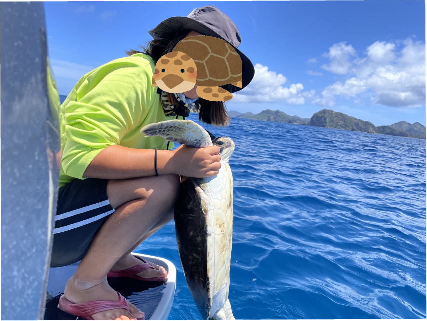 海洋プラスチックゴミに絡まったウミガメを保護@小笠原