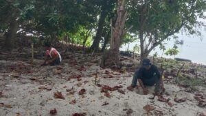 2025年9月、インドネシア・セガマ・ブサール島にて、現地パートナー団体の調査員が、タイマイ(ウミガメ)のふ化後調査を実施しました。